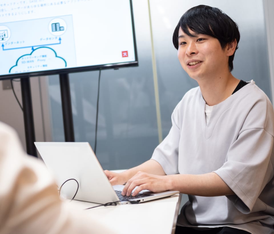 最初に携わったのは、セキュリティソリューションに関するお客さまへ向けた提案資料の作成です。フォーマットに沿った提案資料の作成方法や提案内容を論理立ててまとめるノウハウを学ぶ過程で、お客さまの抱える課題について理解が深まりました。